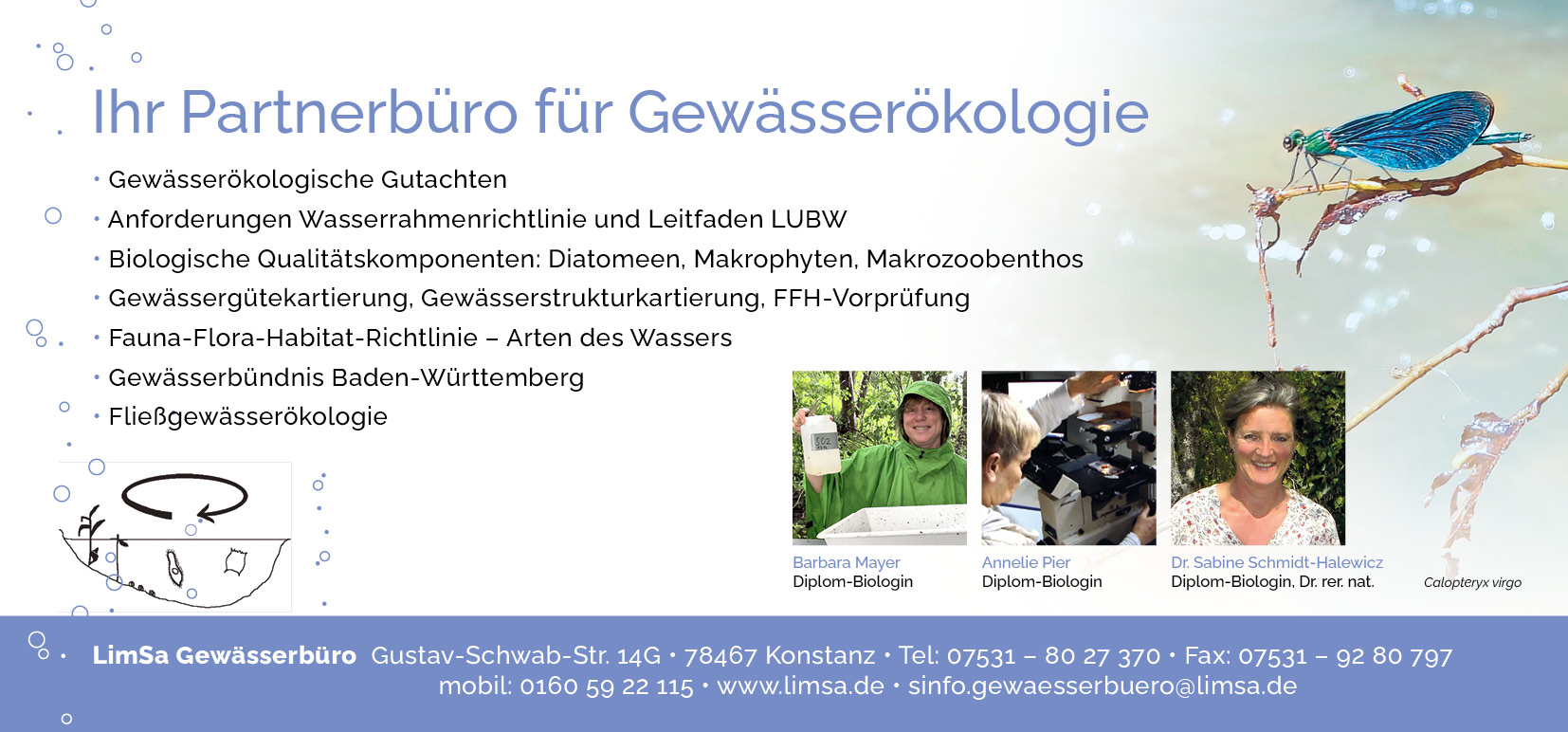 Wir untersuchen Wasser, natürliches, fließendes oder stehendes und Oberflächenwasser. Am 4. April zeigen wir allen Neugierigen, was wir machen. LimSa Gewässerbüro öffnet seine Türen. Von 15h an sind Gäste herzlich willkommen. Schauen Sie vorbei!